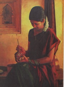 நீண்ட வகிடெடுத்த கூந்தல், மல்லிகைச்சரம், நாணிய விழிகள், கூர்நாசி, தாவணிக்கனவுகள் ,கரங்களில் இறப்பர் வளையங்கள், ஒற்றைச்செயின்…….. விகடனின் அண்மைய வரவான ஓவியர் இளையராஜாவின் ஓவியம் உன்னை தூரிகைபார்த்து வரைந்ததாக சொல்ல வேண்டும்.